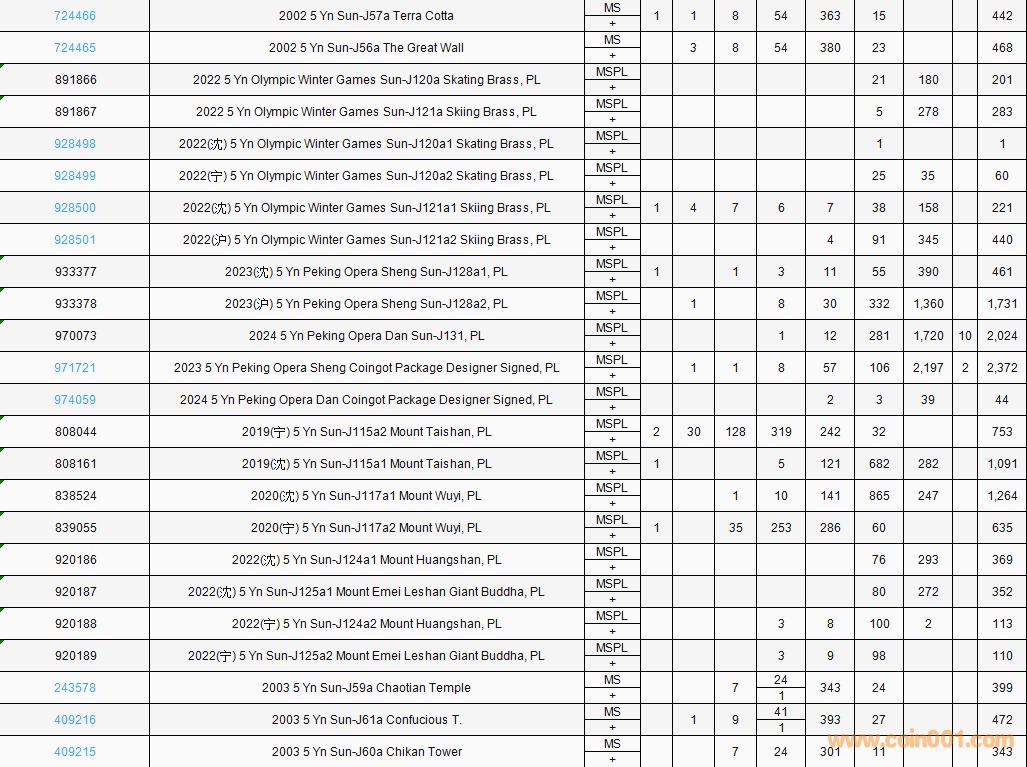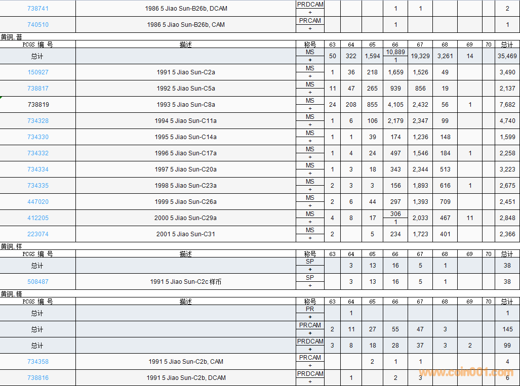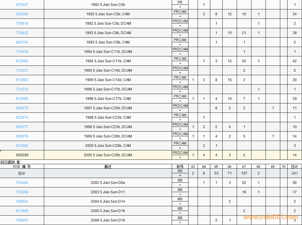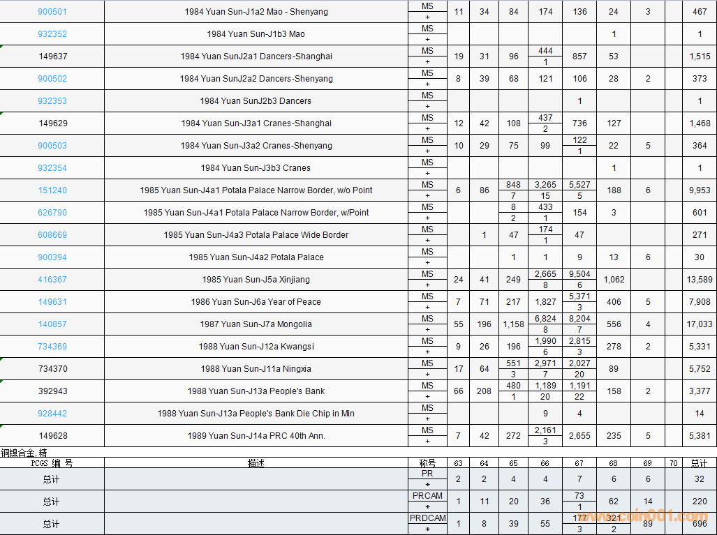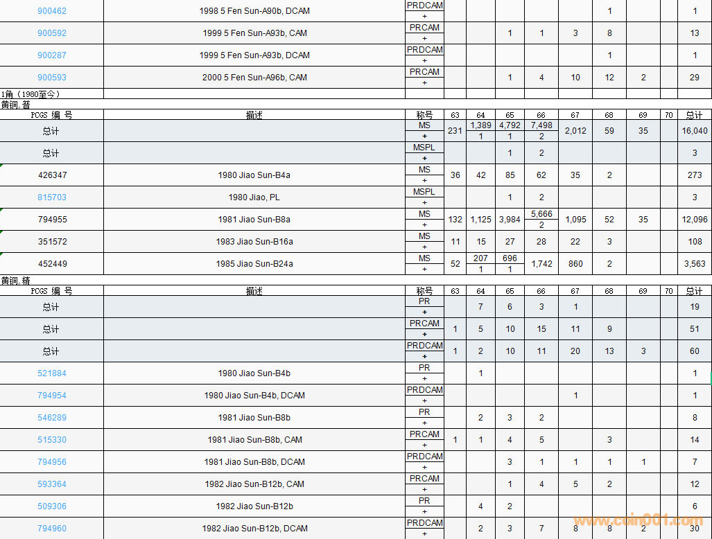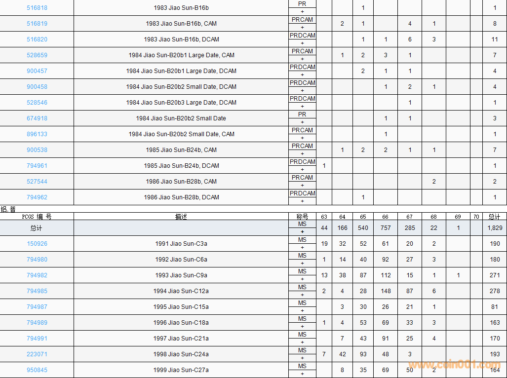 PCGS硬幣評(píng)級(jí)數(shù)量報(bào)告( ..