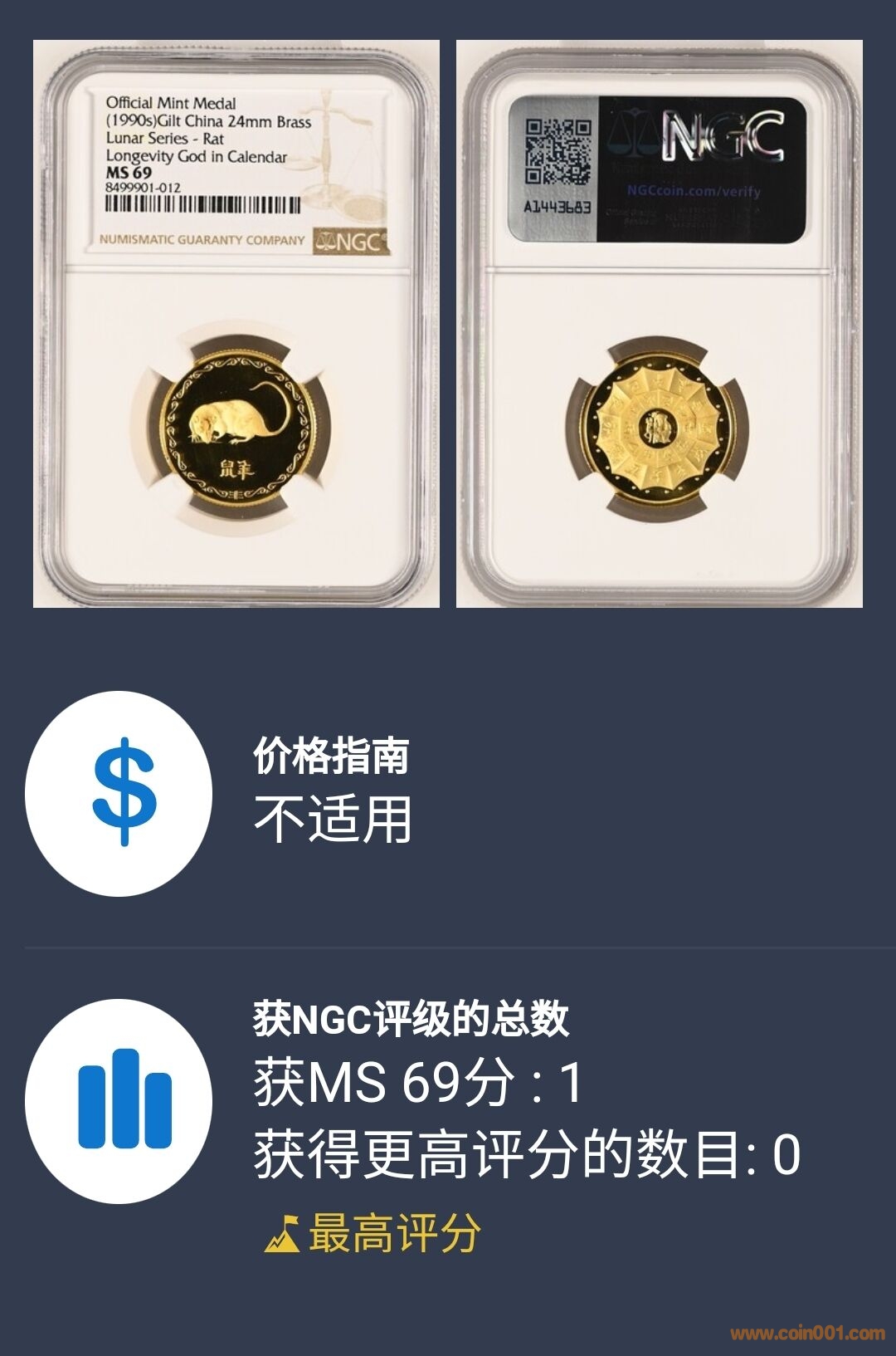 1990年鼠年生肖銅章24mm,NGC MS69,冠軍分,僅1枚  -550元