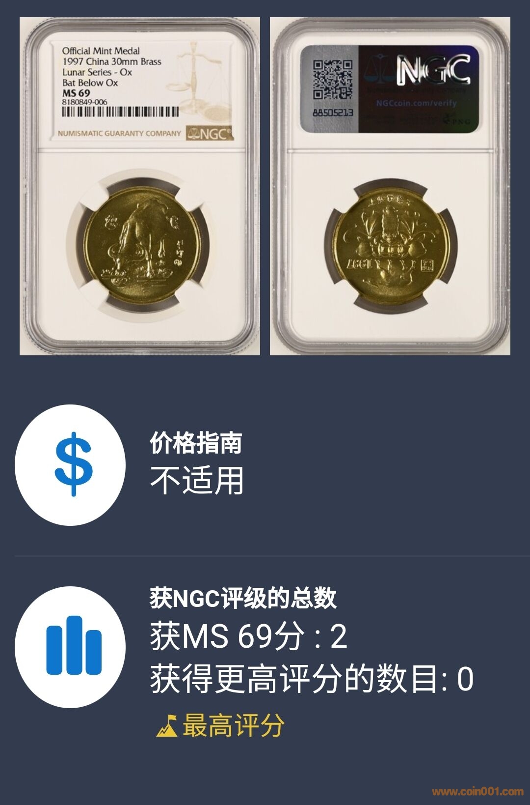 1997年牛年生肖銅章30mm,NGC MS69,冠軍分,僅2枚  -550元
