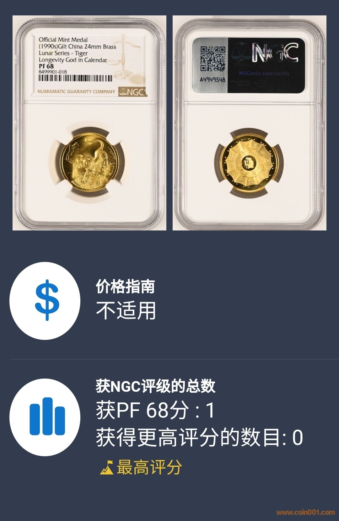 1990年虎年生肖銅章24mm,NGC PF68,冠軍分,僅1枚  -500元