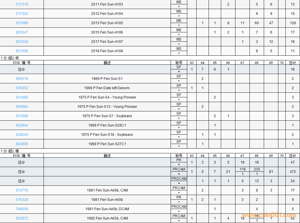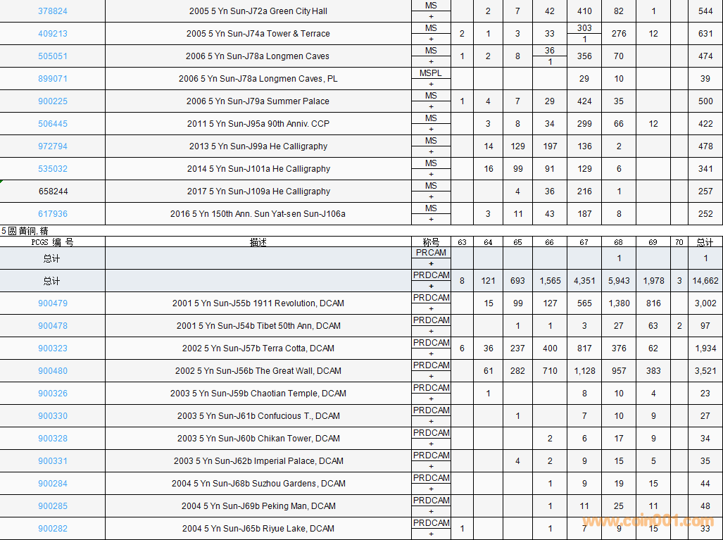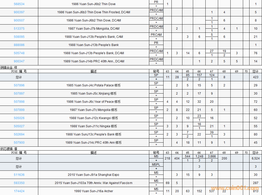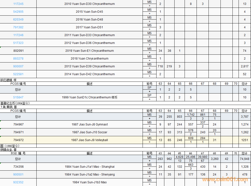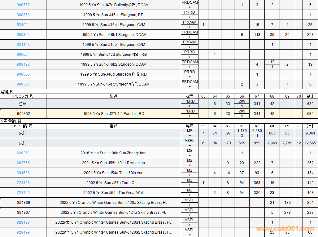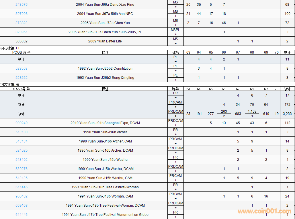 PCGS硬幣評(píng)級(jí)數(shù)量報(bào)告( ..