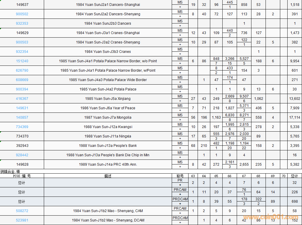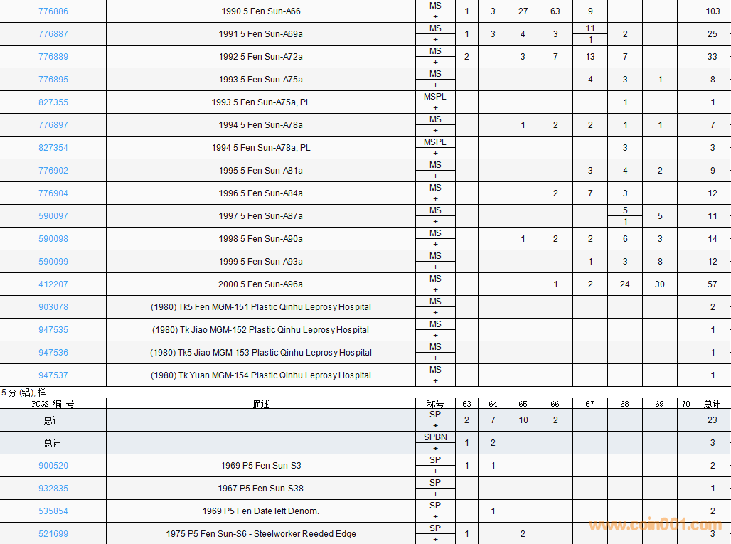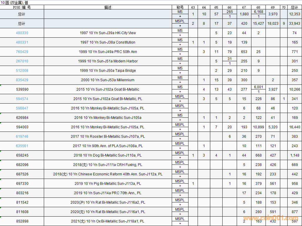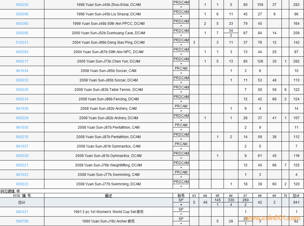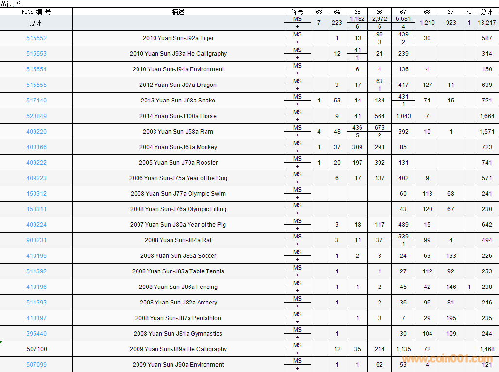 PCGS硬幣評(píng)級(jí)數(shù)量報(bào)告( ..