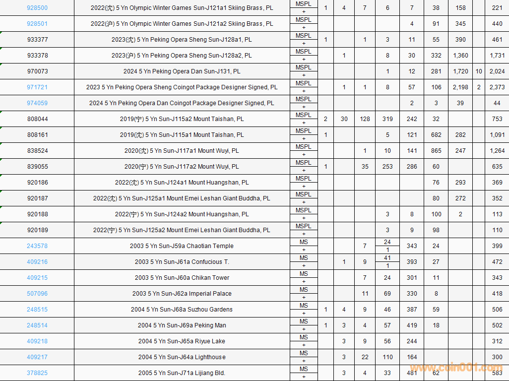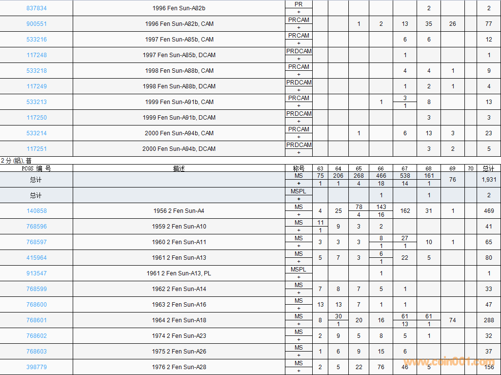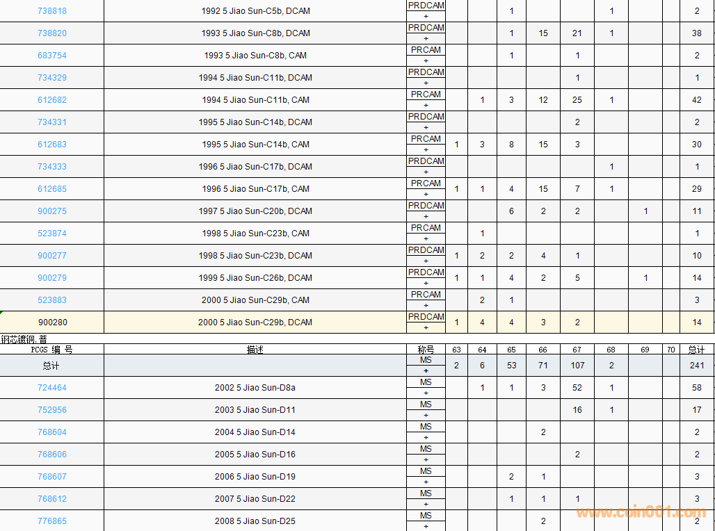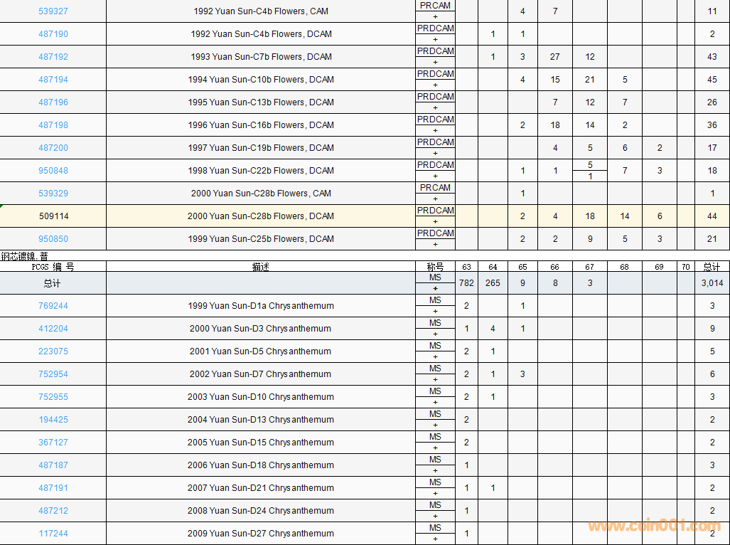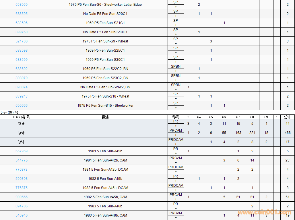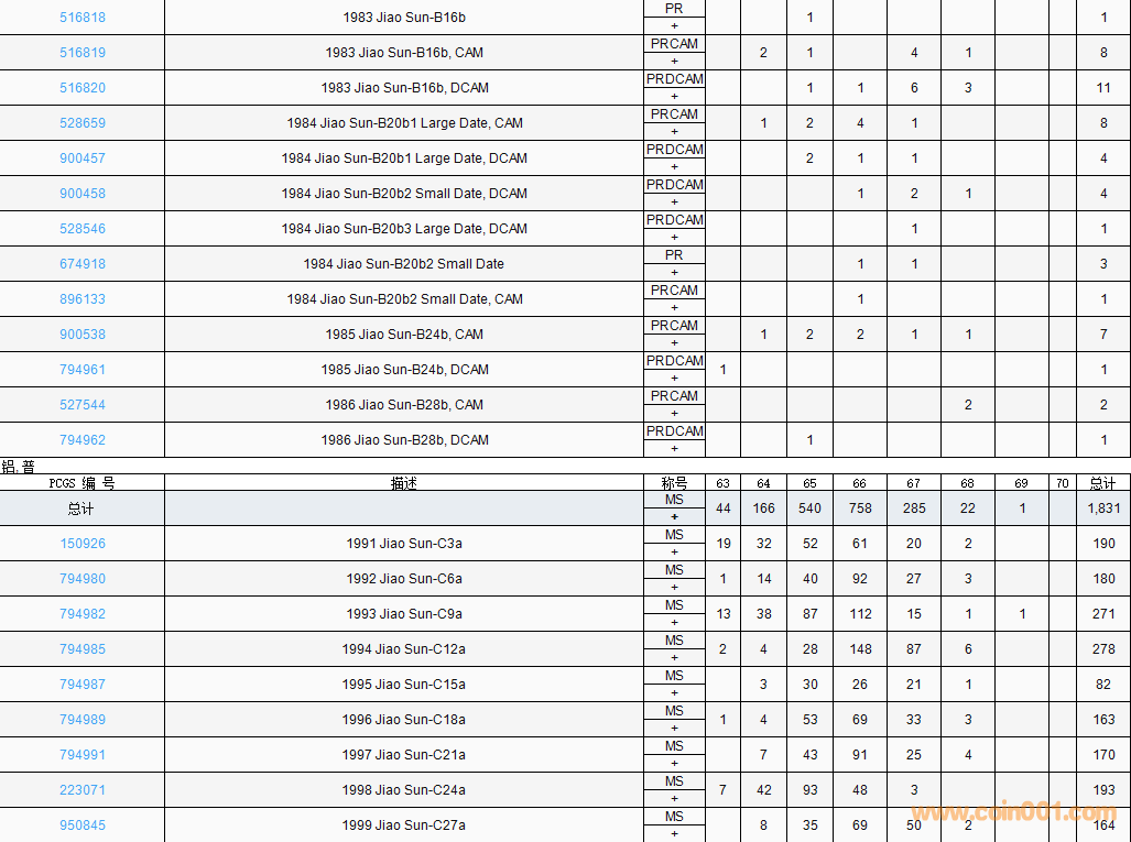 PCGS硬幣評(píng)級(jí)數(shù)量報(bào)告( ..