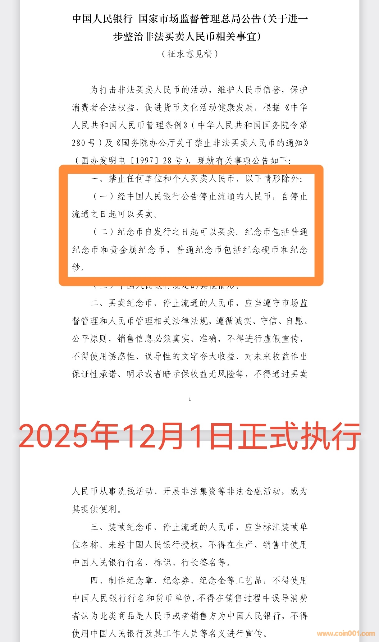 央行等三部門就人民幣買賣及相關(guān)管理規(guī)定征求意見,于2021年8月向社會(huì)公開征求意見,其附件2已作起草說明。時(shí)隔四年,本次更加規(guī)范,并肯定,可以說再次強(qiáng)調(diào),可解讀為央行對(duì)人民幣買賣市場(chǎng)的規(guī)范和肯定,也是對(duì)廣大紀(jì)念幣愛好者合法權(quán)益的保障,具有時(shí)代意義。重點(diǎn)關(guān)注一下兩點(diǎn):