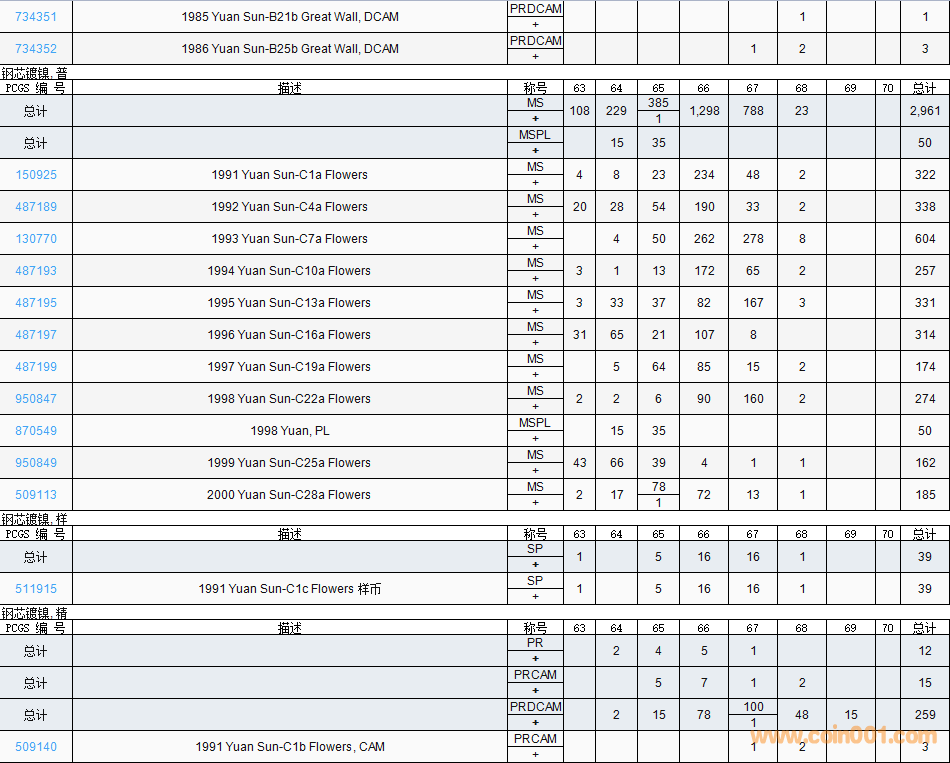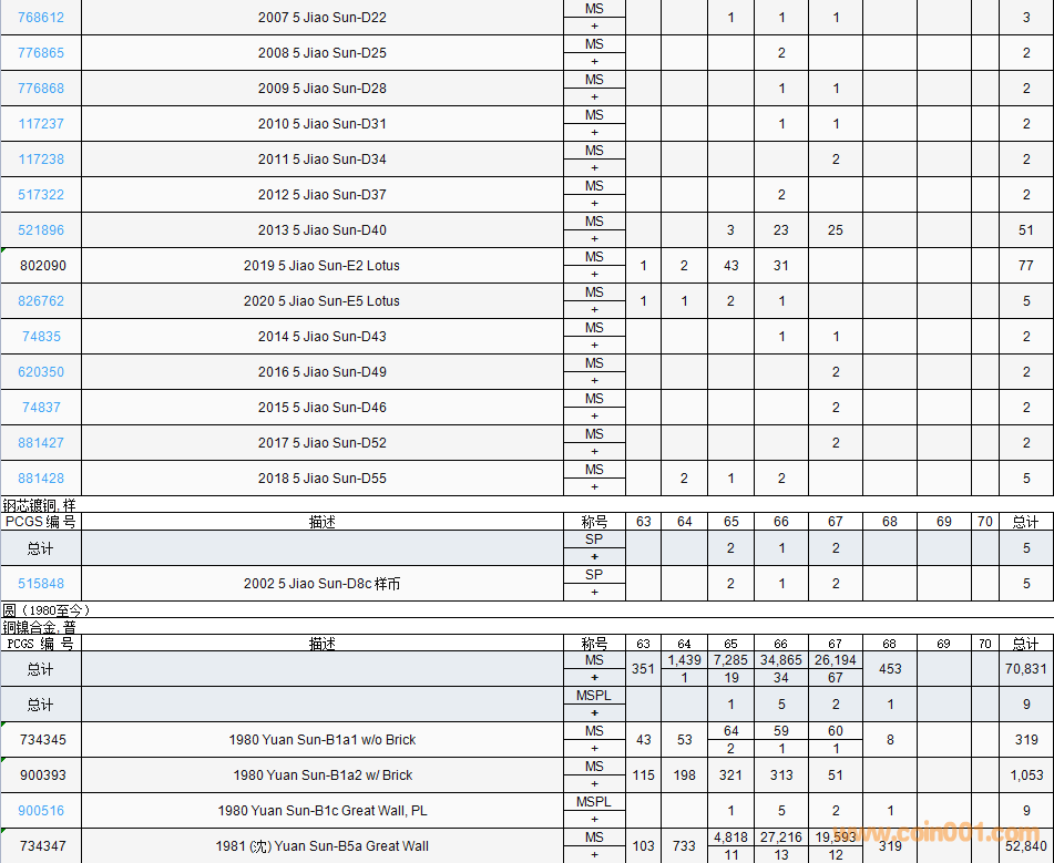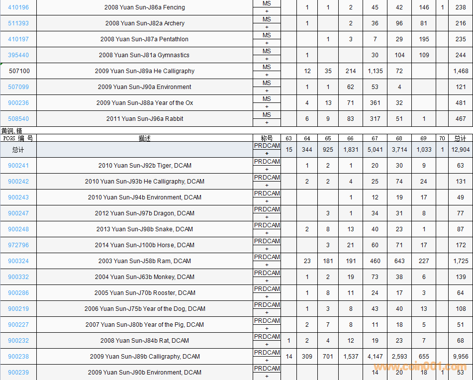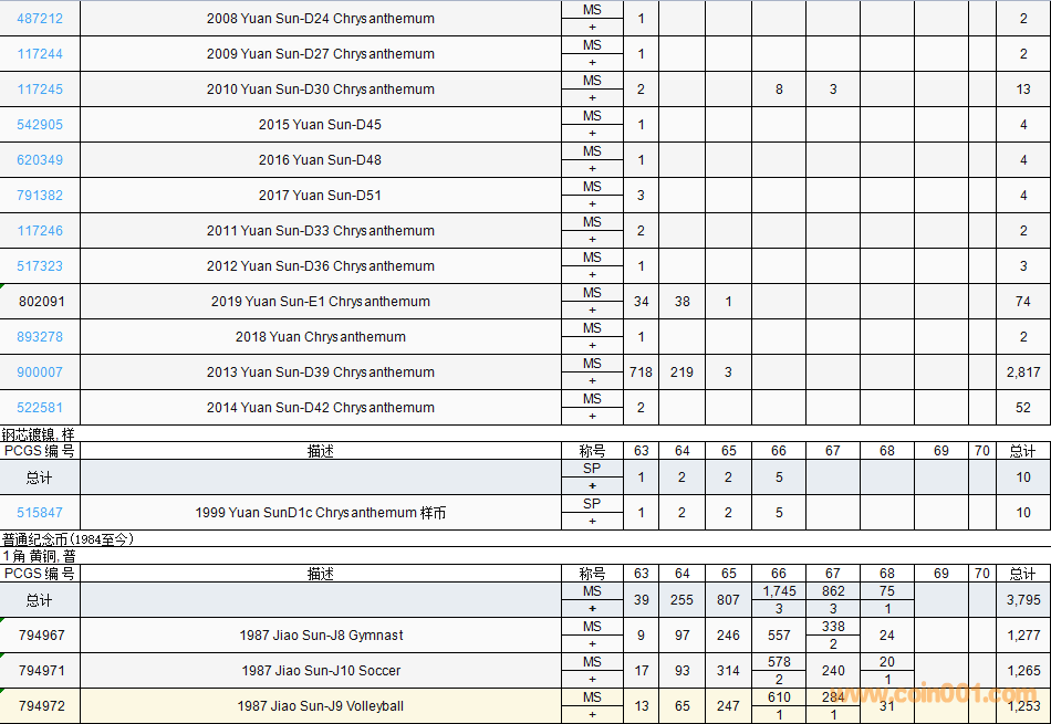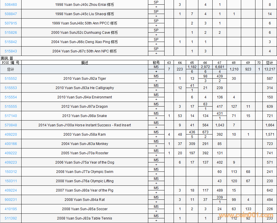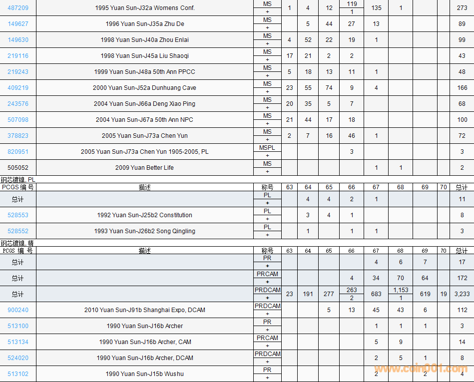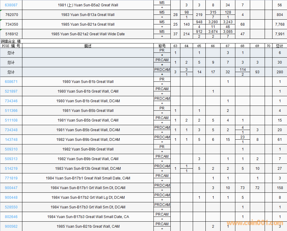 PCGS硬幣評(píng)級(jí)數(shù)量報(bào)告( ..