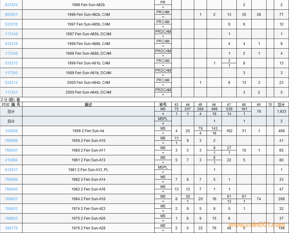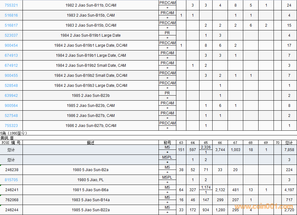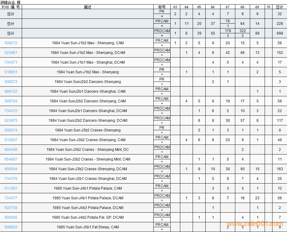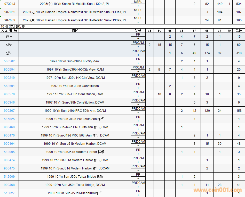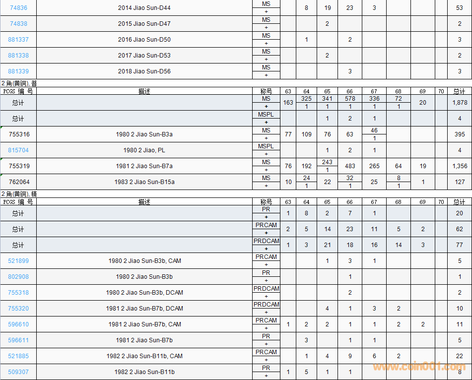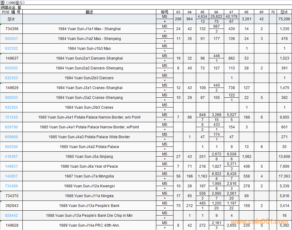 PCGS硬幣評(píng)級(jí)數(shù)量報(bào)告( ..