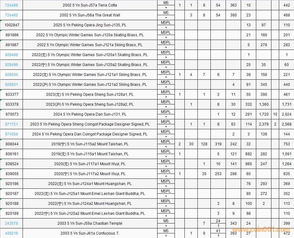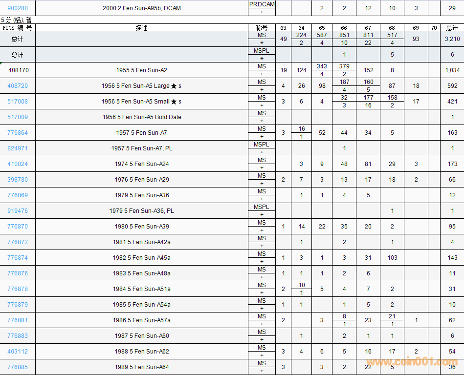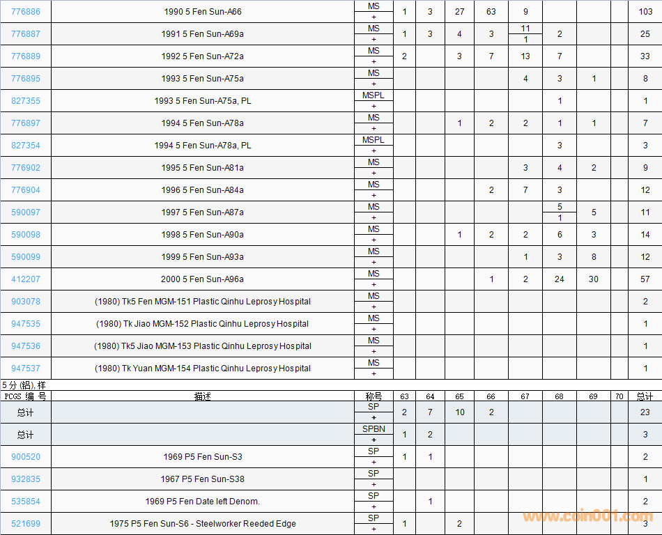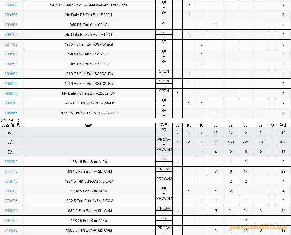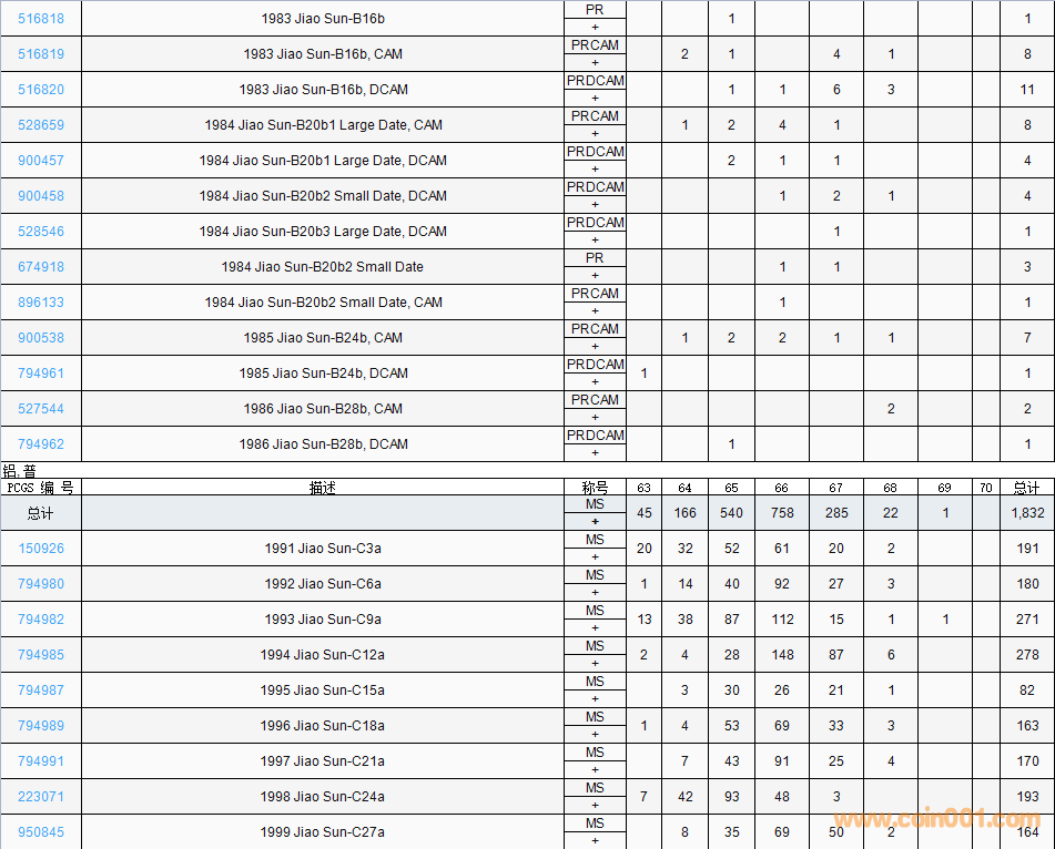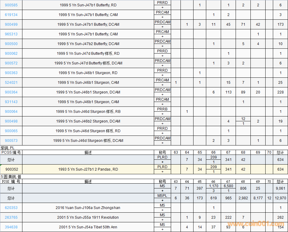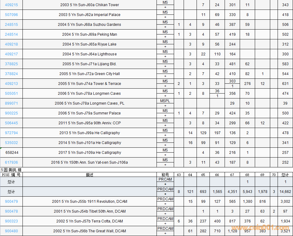 PCGS硬幣評(píng)級(jí)數(shù)量報(bào)告( ..
