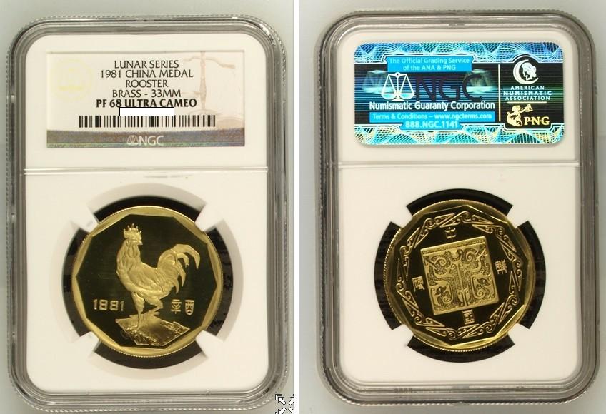 上海造幣廠發(fā)行的中國生肖紀念銅章至今已經(jīng)發(fā)到了第三輪之多了,其中規(guī)格有33MM的、30MM的《如顧杏寶老師雕刻設計的30MM壬戌狗年(狗頭)生肖紀念章》、23MM的、18mm的、12MM的,精制、普制、鍍金,鍍銀,雙色,本銅、紫銅等等,林林總總美不勝收蔚為大觀。其中精品紛呈,但是論經(jīng)典永恒還是首推第一輪生肖紀念章,第一輪之中又以81年為起首的辛酉雞年生肖為尊,辛酉年更開啟了我國生產(chǎn)發(fā)行生肖紀念幣章之先河。生肖雞年紀念銅章也是上海造幣廠這么多年來生產(chǎn)的所有生肖紀念章中唯一一枚與我國現(xiàn)代貴金屬幣中堪稱傳世典范的沈陽造幣廠所鑄造8克金生肖、15克銀生肖金銀幣圖案相同的紀念章,既見證了兩家造幣廠強強聯(lián)袂資源共享的良好合作關系,也從另一個角度很好的印證了幣章同源的一段佳話。