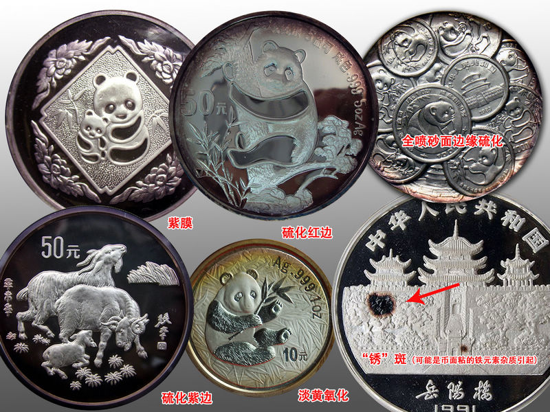 關(guān)于金幣的斑,造幣廠和金總有專人做過研究和說明,在此,補(bǔ)充觀點(diǎn):999的金幣容易長紅斑,22K等非純金的金幣很少長紅斑,估計是因?yàn)?4K金很軟,鍛帶和壓鑄的時候容易粘雜質(zhì),雜質(zhì)主要是銀元素、次之是鐵元素,遇潮濕、直接接觸塑料封,易發(fā)生化學(xué)反應(yīng),形成紅斑。