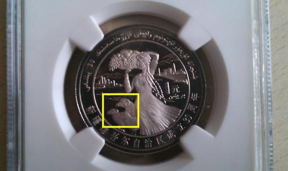 我也來補(bǔ)充一個(gè)吧,從幣本身來說,鏡面更精制,可以和精制新疆銀幣的鏡面媲美,噴砂的部分也比普通精制新疆的噴砂要重的多。