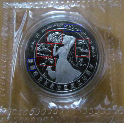 新疆銀幣。該銀幣目前發(fā)現(xiàn)帶塑封裝與不帶塑封裝兩種包裝。據(jù)說帶塑封裝主要在國(guó)內(nèi)流通,不帶塑封裝一般與精制鎳幣一起存放在“黑盒”中,主要在于對(duì)外出口。至于以上情況是否屬實(shí)還需進(jìn)一步認(rèn)證,及以上兩種包裝的數(shù)量現(xiàn)在也不得而知。回說正題,新疆銀幣筆者發(fā)現(xiàn)了“三種”不同版別,區(qū)別在于帶年份那面后面的山的形狀不同,具體區(qū)別在于山的“左角”有“三種”不同的形狀。一種是山底部的噴砂不完整(凹進(jìn)去了一塊),暫時(shí)把這種版別叫做“凹版”;另一種是山底部的噴砂是完整的,暫時(shí)把這種版別叫做“平版”;最后一種是山的左側(cè)噴砂多出了一塊,暫時(shí)把這種版別叫做“凸版”。