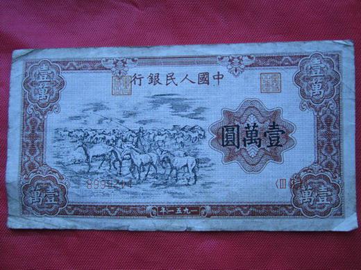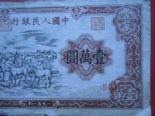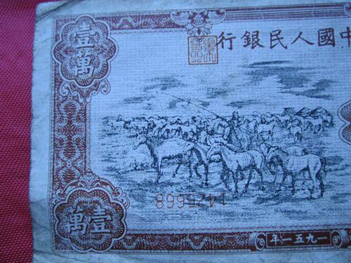 牧馬只有一個(gè)冠號(hào),7位號(hào)碼,號(hào)碼首位未見3以上的,所以推測(cè)最大印制量是300萬(wàn)張,保存下來的數(shù)量有人說100多張,有人說數(shù)百?gòu)?,未見印刷變體,這是大家公認(rèn)的,所以這樣推測(cè),這張是假票。