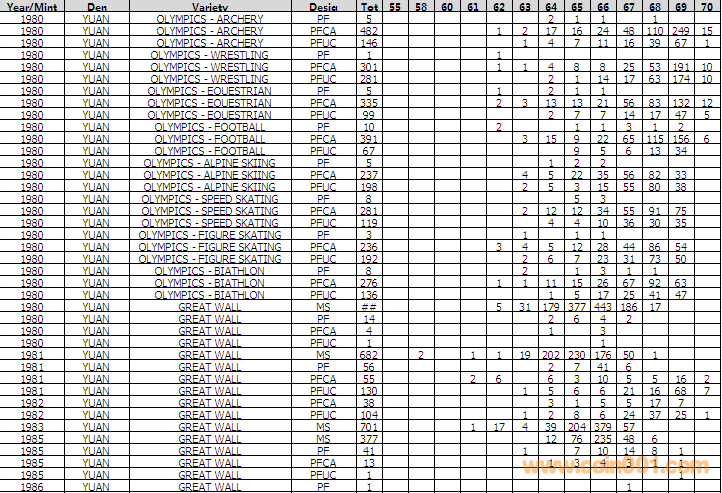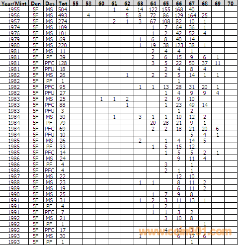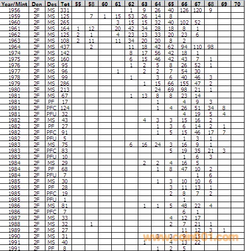 NGC硬幣評(píng)級(jí)分?jǐn)?shù)分布 ..
