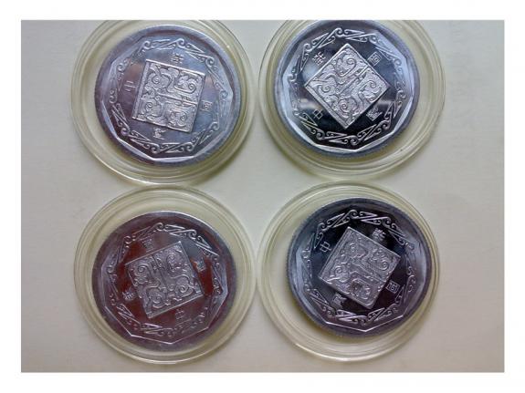 引用 引用第5樓ah88600于2011-06-23 16:41發(fā)表的 :四枚都上圖行嗎?清楚些。。。。帖子上的好像非常漂亮,沒有缺點,有銀光,很好!