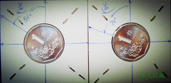 關(guān)于背逆幣,我認(rèn)為應(yīng)該制定標(biāo)準(zhǔn),首先,關(guān)于背逆幣需要有明確的定義,按照美忠的提法,把正反面壓印形成角度的幣分為背轉(zhuǎn)和背逆,我同意這種劃分,但角度需要探討。