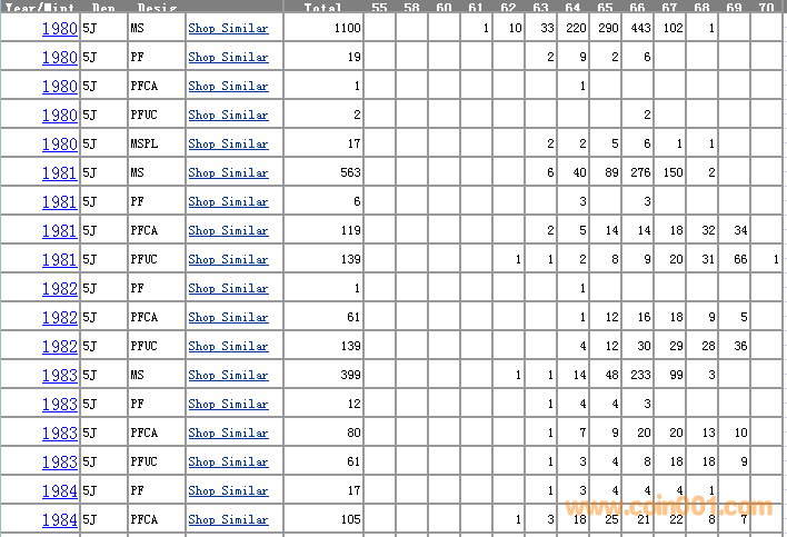 NGC硬幣評(píng)級(jí)分?jǐn)?shù)分布 ..