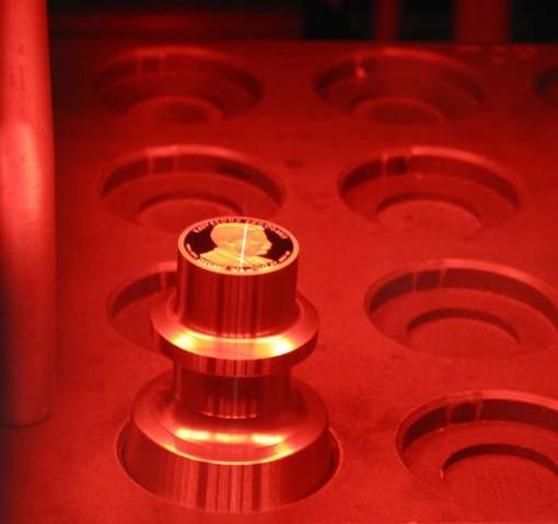 接下來精制幣的幣模被放入一個物理氣相沉積 (PVD) 爐。PVD 工序會給幣模的表面鍍鉻以增加強度,延長其壽命。完成以后,幣模就可以裝入印花機來壓印精制幣。