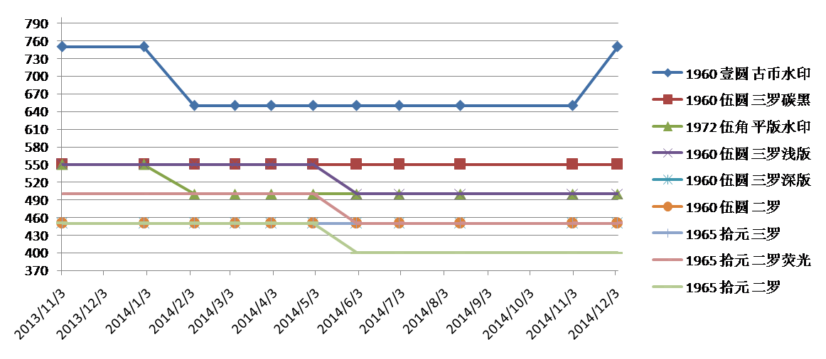 引用 引用第13樓xw781113于2014-12-31 09:23發(fā)表的 :樓主的圖表,似乎是按照66分評(píng)級(jí)幣的價(jià)格總結(jié)的?