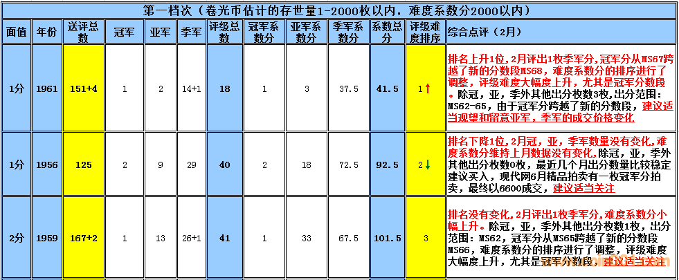 早期分幣評級難度排 ..