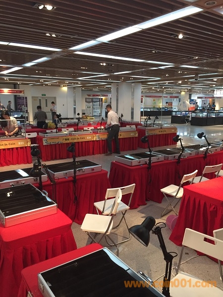 這次展會(huì)很像香港錢(qián)幣展,除了周邊大的參展商外,每個(gè)參展商都是這樣的鋁合金展柜,這樣