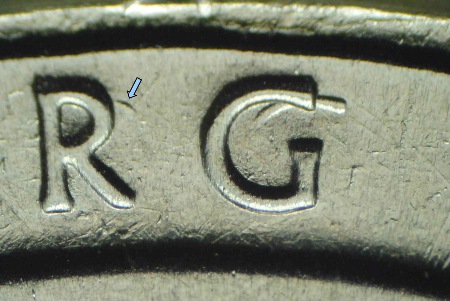 一枚真正的重模幣上日期的重?,F(xiàn)象。請(qǐng)注意廠記沒有重影。
