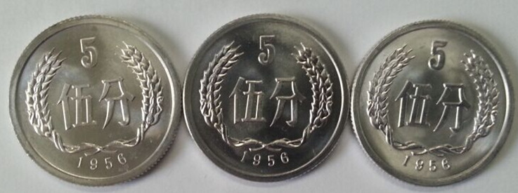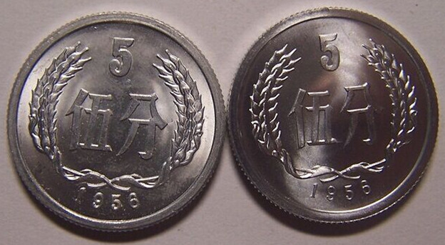 1956年,蘇聯(lián)專(zhuān)家來(lái)華協(xié)助印鈔工作。根據(jù)蘇聯(lián)專(zhuān)家丘巴諾夫的意見(jiàn),我國(guó)開(kāi)始試制含低量鎂的防銹鋁合金。6月25日,經(jīng)國(guó)務(wù)院同意后,中國(guó)人民銀行決定采用新合金生產(chǎn)硬分幣。至于20世紀(jì)80年代末90年代初,社會(huì)上尤其是上海、江蘇、福建、浙江、江西、廣東、廣西等地一度流傳“年號(hào)為1955的5分硬*幣含有微量黃金”,只不過(guò)是因?yàn)橐恍┗?yàn)人員在對(duì)其進(jìn)行合金溶解后,發(fā)現(xiàn)有黑色微渣出現(xiàn)而誤以為含有黃金而已,純屬以訛傳訛。