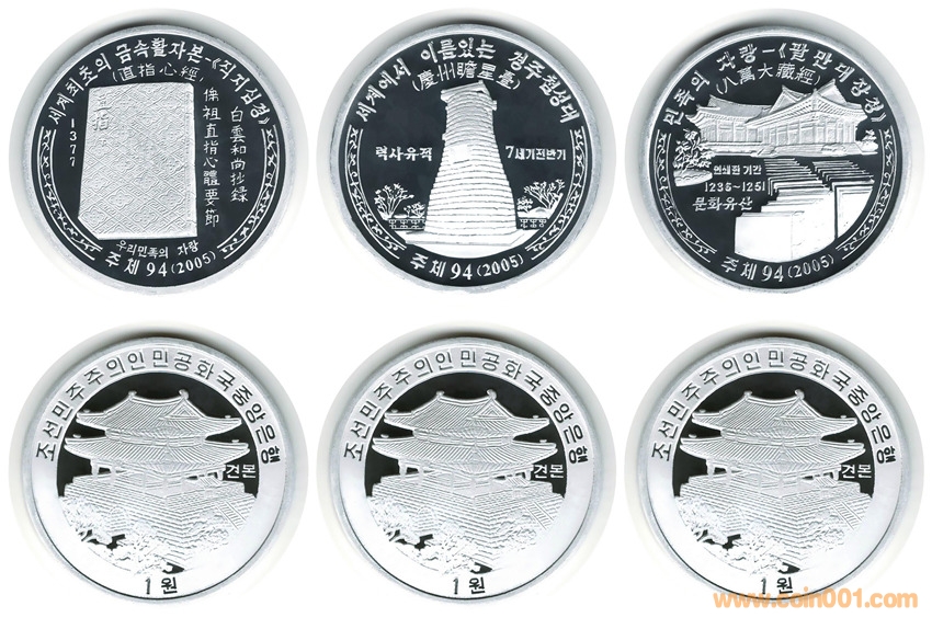 67-69. 朝鮮歷史遺跡(直指心經(jīng)、慶州瞻星臺、八萬大藏經(jīng))呈樣幣