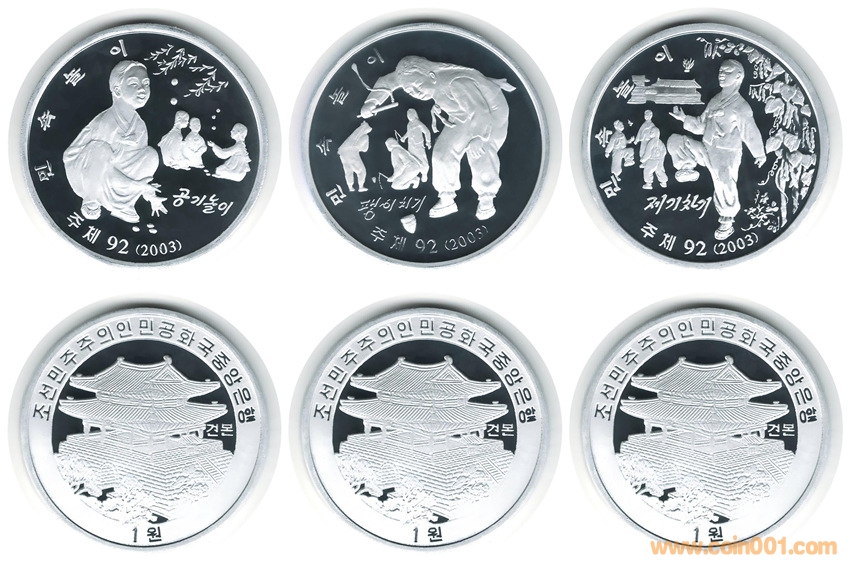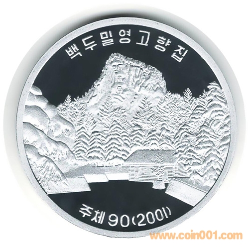 (金日成故居-萬景臺、金正日故居-白頭山密營、金正淑故居)45mm 直徑,比2001 版領(lǐng)袖故居規(guī)格大,并且多了一枚金正淑故居。