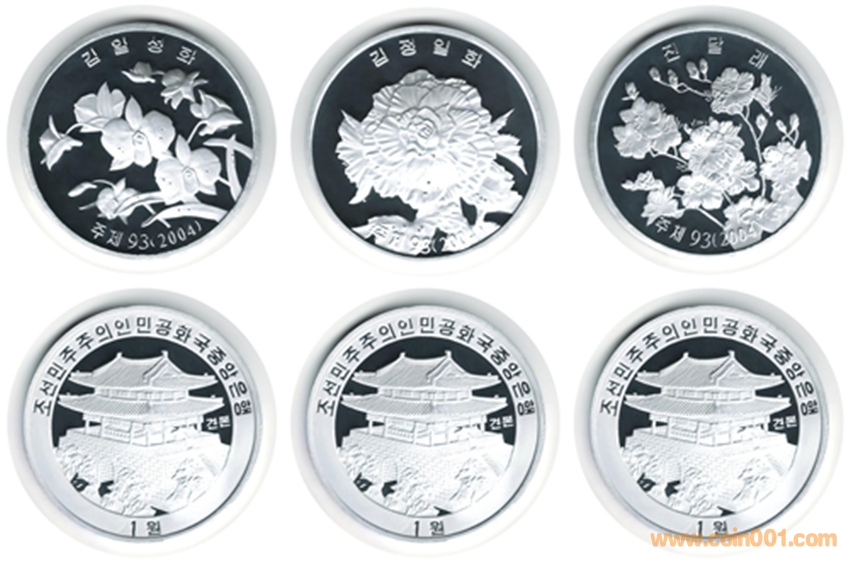 54-56. 朝鮮名花呈樣幣(金日成花、金正日花、金達萊花)