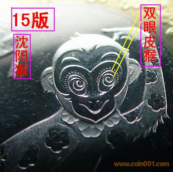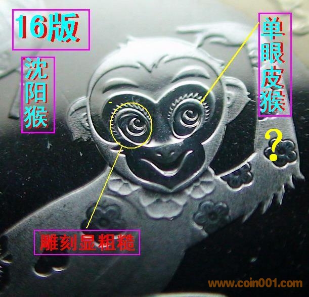 “16版” 沈陽猴,雙眼的細(xì)節(jié)雕刻不如“15版”精美。特別是左眼(雙)眼皮的雕刻不足,致二層眼皮凹陷、短缺。從正常角度觀看,猴左眼呈“單眼皮”(比一般單眼皮要厚);從仰視角度觀看,猴左眼呈人的“雙眼皮手術(shù)”失敗的癥狀。